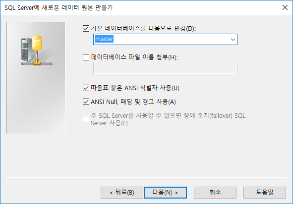 기본 데이터베이스는 연동 시키고 싶은 데이터베이스로 해주세요~
