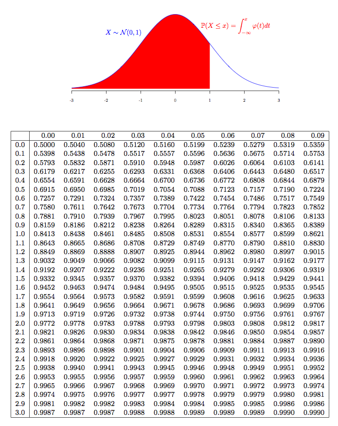 평균이 0이고 분산이 1인 정규분포 N(0,1)을 따름