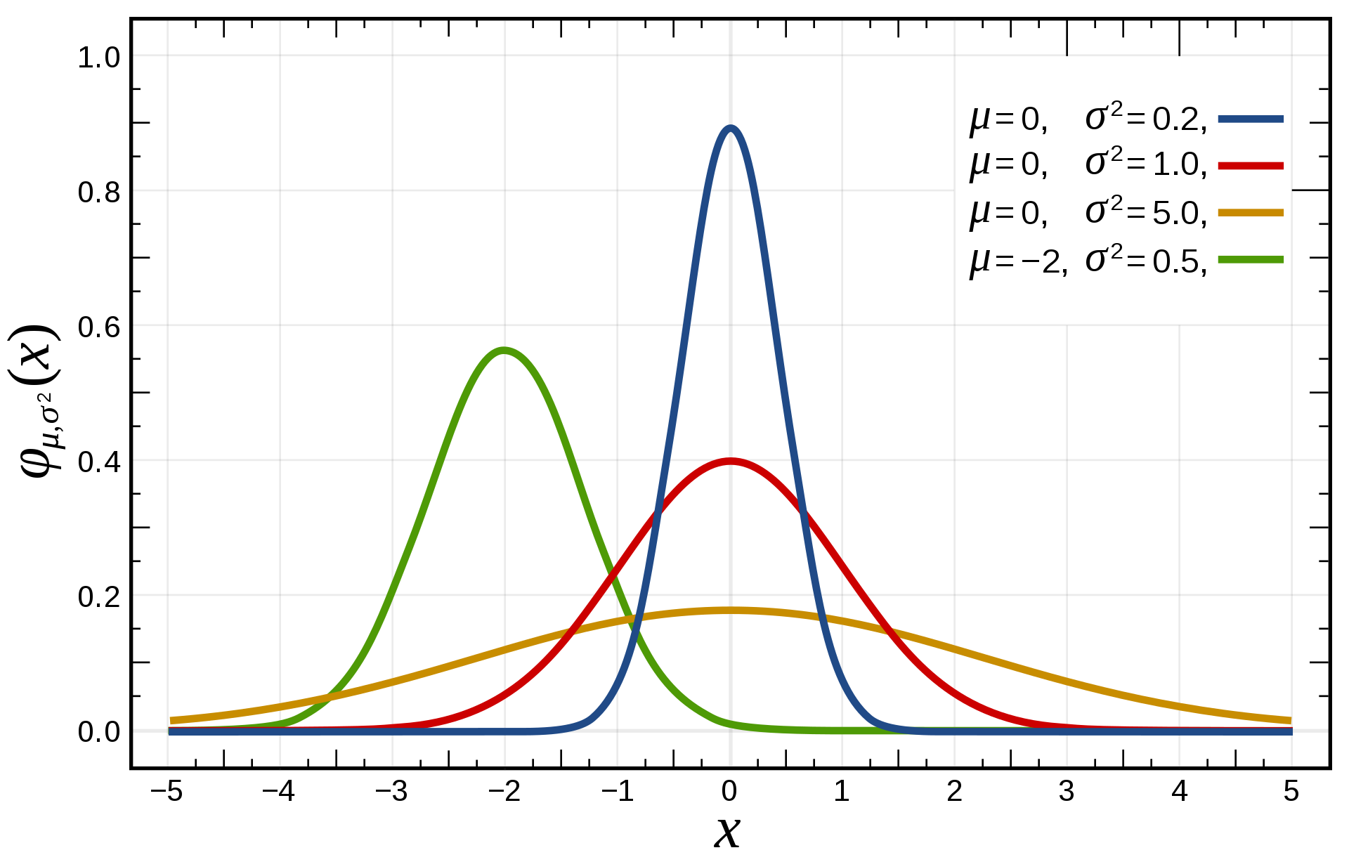평균은 같고 분산이 다른, 분산은 같고 평균이 다른 정규분포의 확률밀도함수 분산은 같고 평균이 다를 경우 위치만 이동
