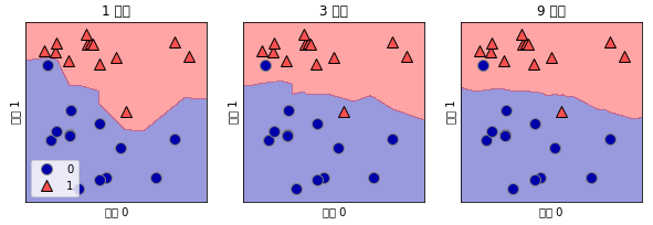 결정경계 및 이웃 수별 차이 k-Neighbors Regression